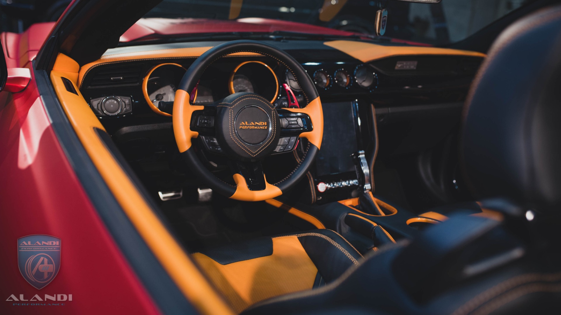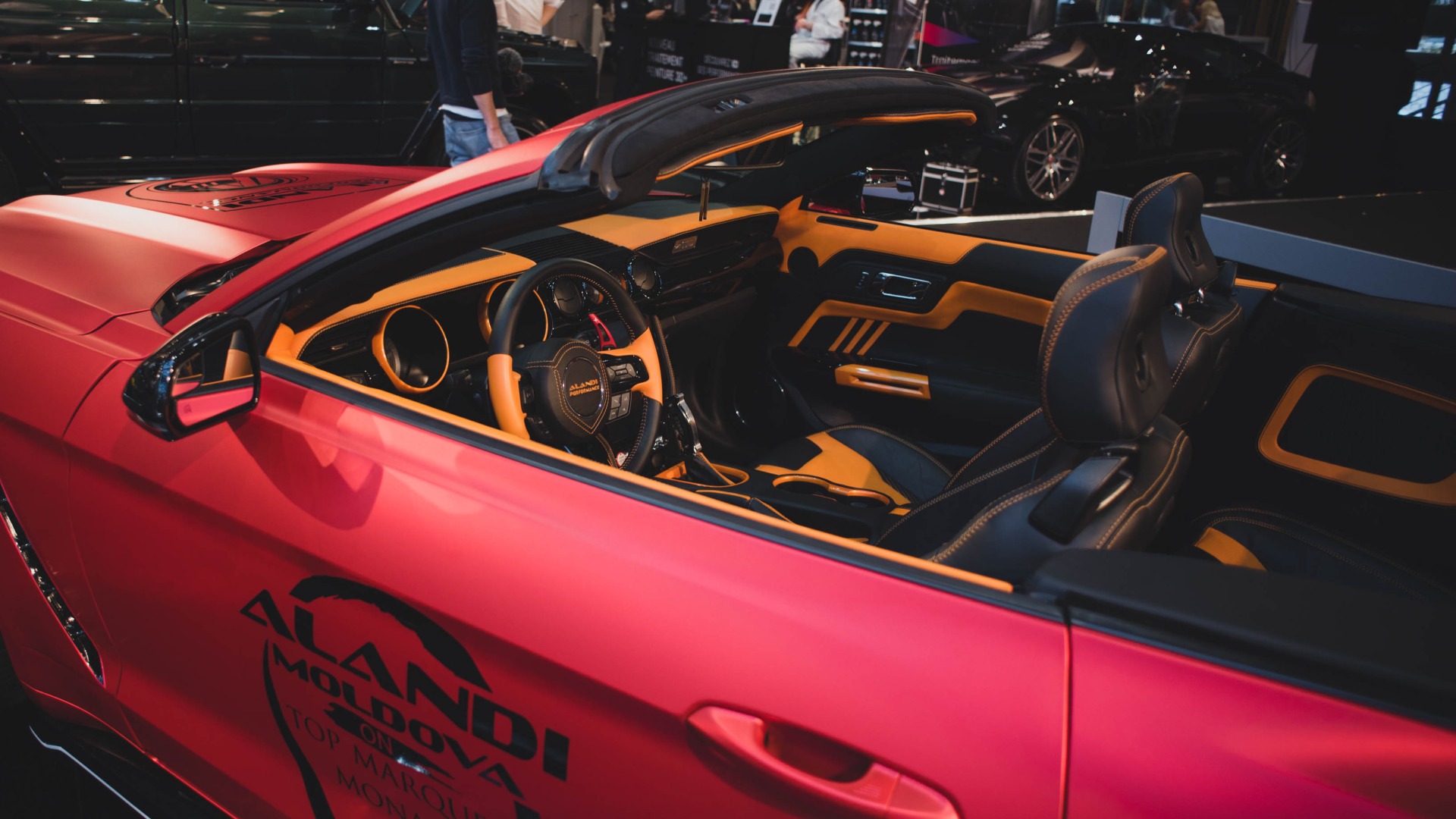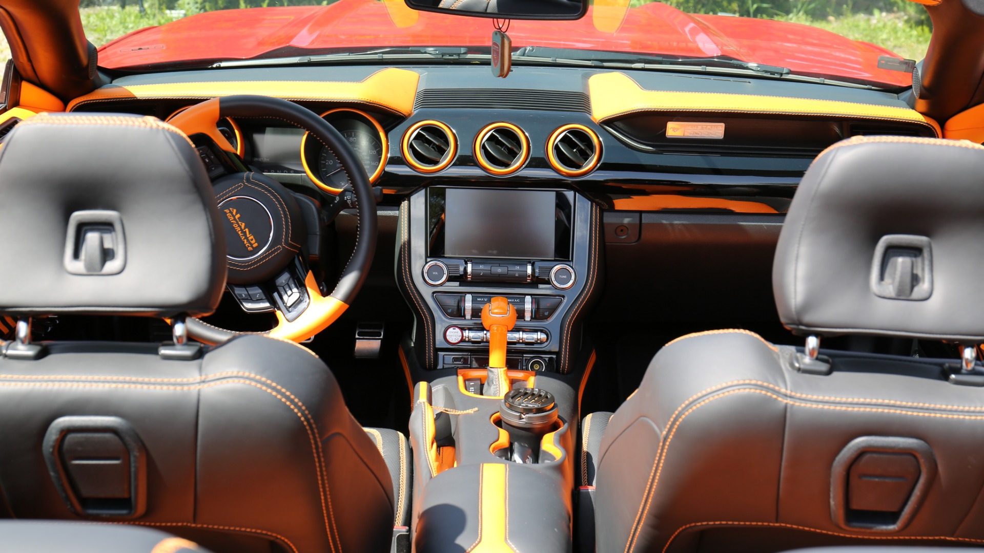 The convertible interior is quite up-to-date. Everything looks quite functional and there’s no room for any archaic elements. The proportions are inline with the style and traditions of the legendary car family though. The front dashboard wells bring out the romantic style of sixties or sun visors generate similar vibrations. This is so American. We decided to keep such atmosphere and emphasized it by adding a little bit of craziness.