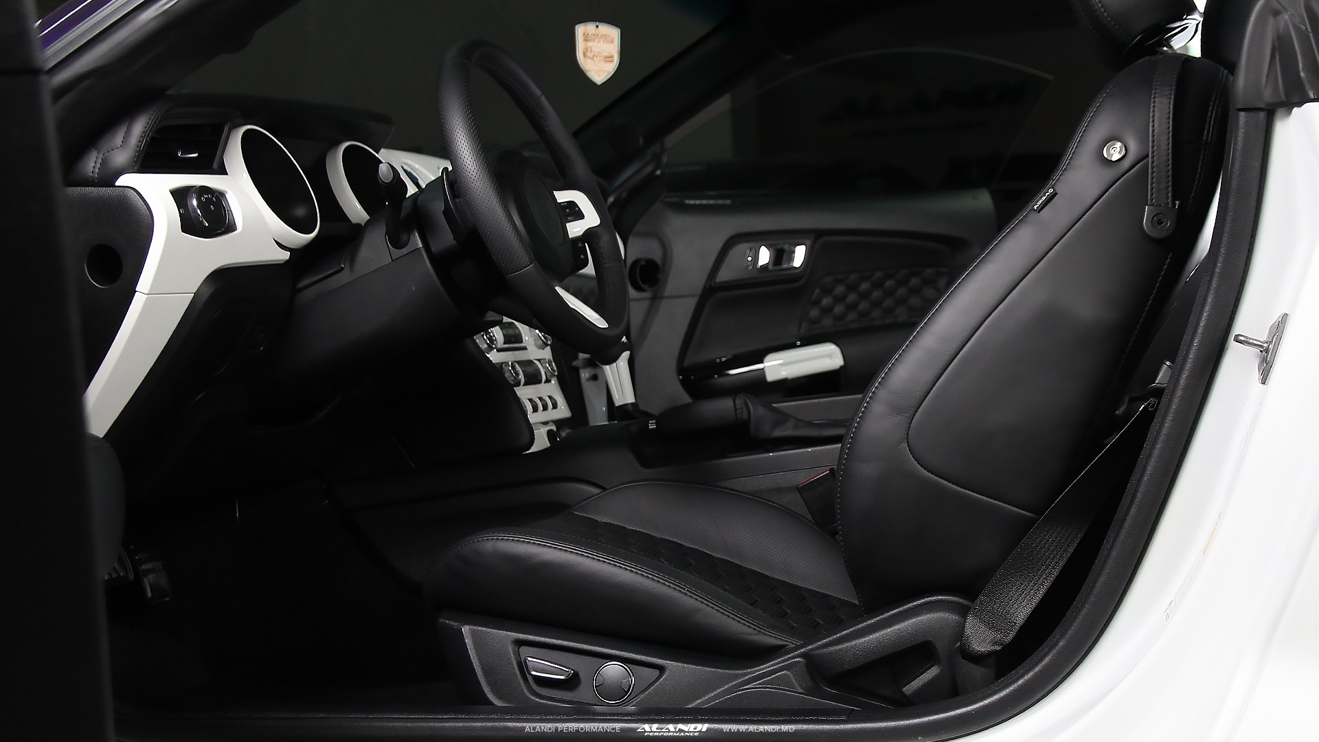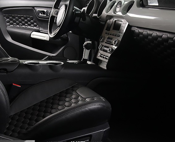 A favorite project of ours: tango of monochrome classic and non-trivial interior details. This is stylish and exquisite. Black & white meets the driver inside. The more time you spend behind the steering wheel the better it gets. The sleek torpedo covering attracts the eyes while you are getting comfrotable black expensive leather seat.
