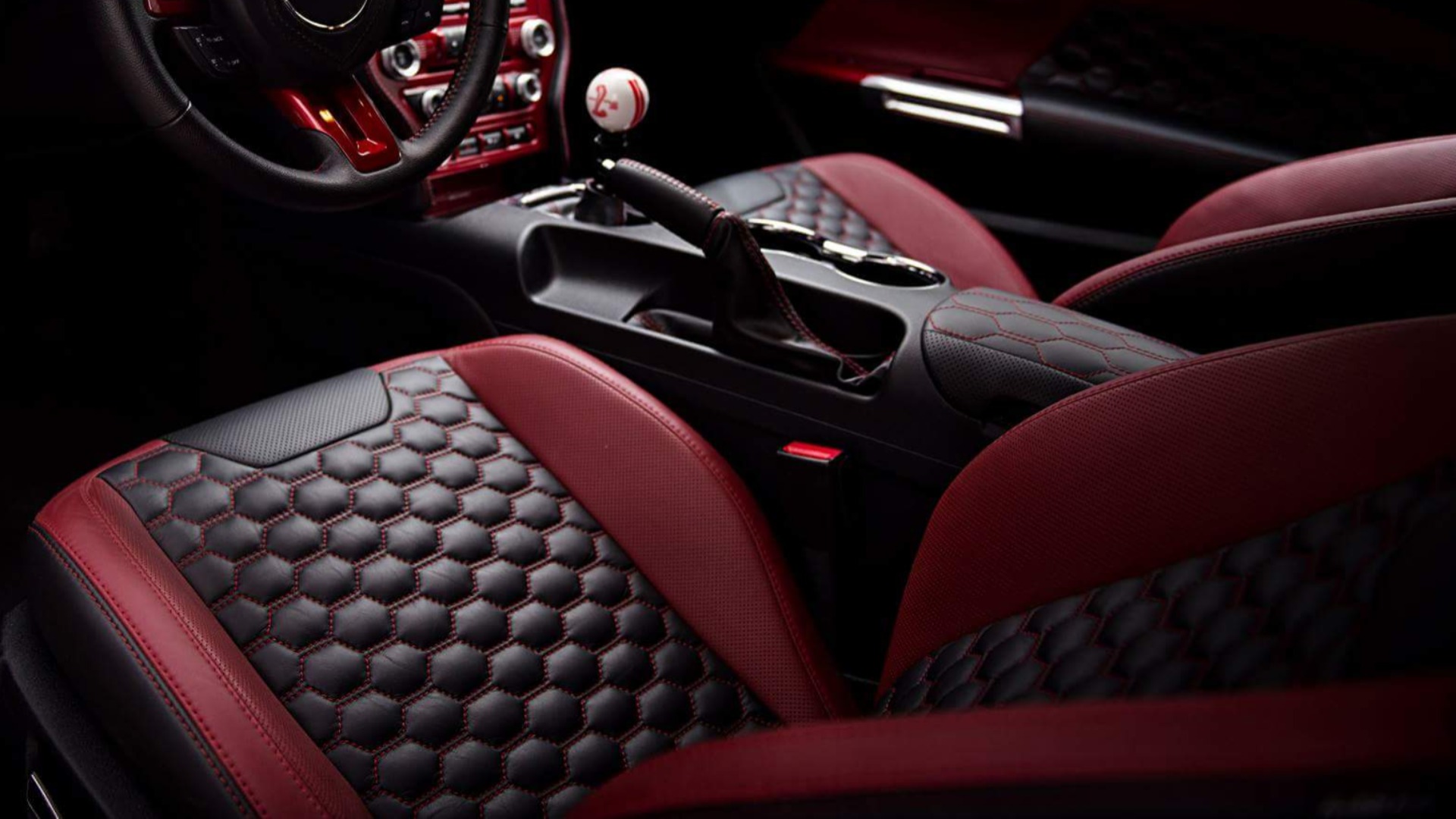 The dance of black and red is the best start of a day. You may just want to open the door and check out this beauty. This cockpit has hots for you. Take a seat and gently brush you hand across the dashboard. What a nice sun shades covering the gauges and deep wells! Start the car to see how scales get highlighted, make yourself comfortable and take off.
